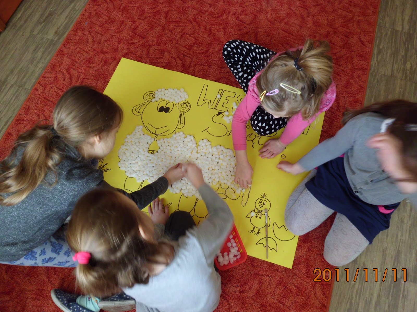 patrona, a następnie podczas zajęć w bibliotece wykonały kolorowe koguciki